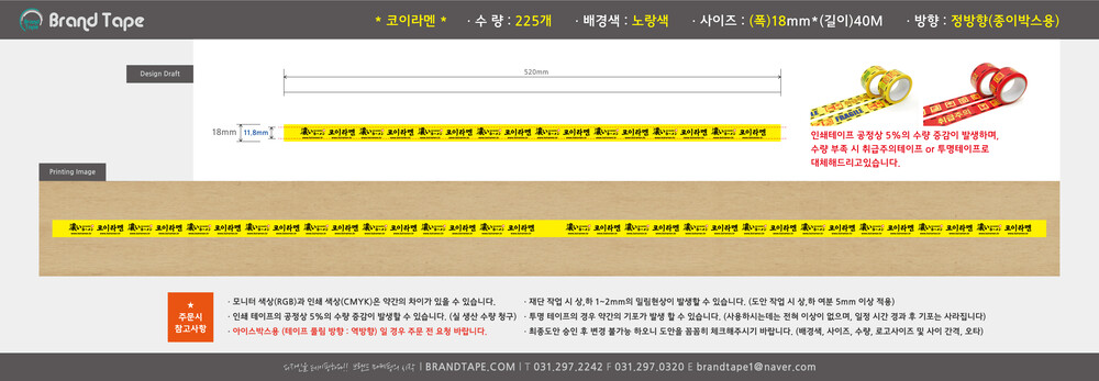 [ 주식회사 코이 고객님 ] 무동판 컬러 인쇄 테이프 225개