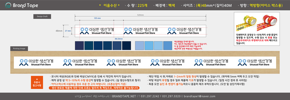 [ 이음수산 고객님 ] 무동판 컬러 인쇄 테이프 225개