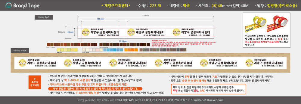[ 계양구가족센터 고객님 ] 무동판 컬러 인쇄 테이프 225개