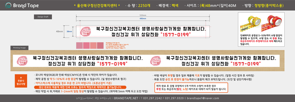 [ 울산북구정신건강복지센터 고객님 ] 무동판 컬러 인쇄 테이프 2250개