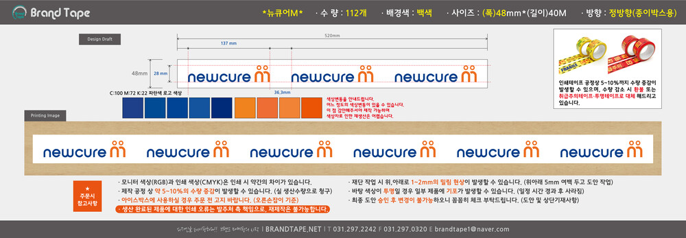 [ 뉴큐어M 고객님 ] 무동판 컬러 인쇄 테이프 112개