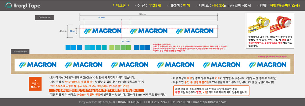 [ 매크론 고객님 ] 무동판 컬러 인쇄 테이프 1125개