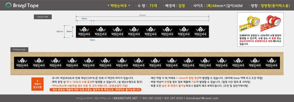 [ 떡빚는바우 고객님 ] 무동판 흑백 인쇄 테이프 75개