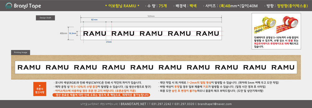 (최종 승인하신 시안으로 제작이 진행되기 때문에 생산이 완료 된 제품에 대한 인쇄 오류는 발주처 책임으로 재제작이 불가능 합니다.)