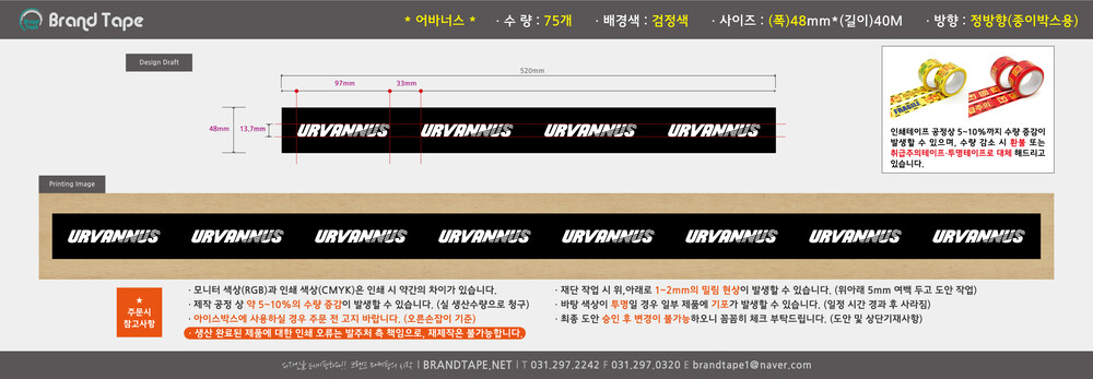 (최종 승인하신 시안으로 제작이 진행되기 때문에 생산이 완료 된 제품에 대한 인쇄 오류는 발주처 책임으로 재제작이 불가능 합니다.)