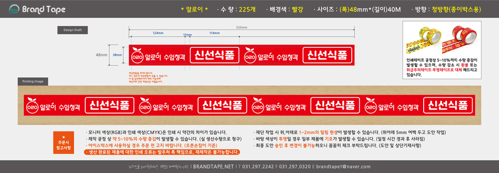 [ 알로이 고객님 ] 무동판 컬러 인쇄 테이프 225개