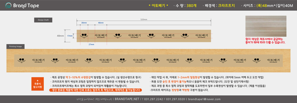 [ 아토배기 고객님 ] 무동판 크라프트 인쇄 테이프 380개