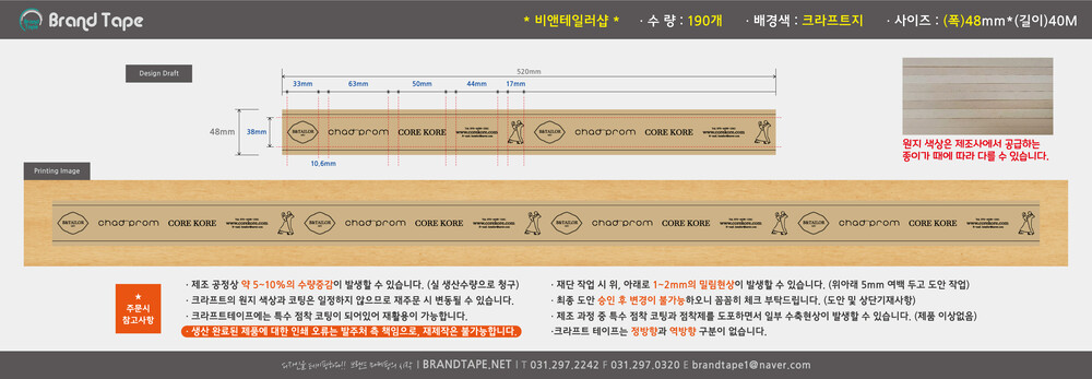 [ 비엔테일러샵 고객님 ] 무동판 크라프트 인쇄 테이프 190개
