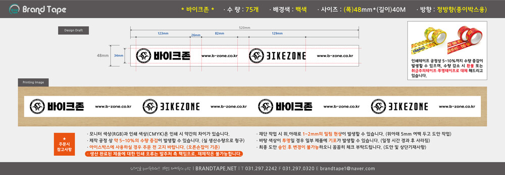 [ 바이크존 고객님 ] 무동판 흑백 인쇄 테이프 75개