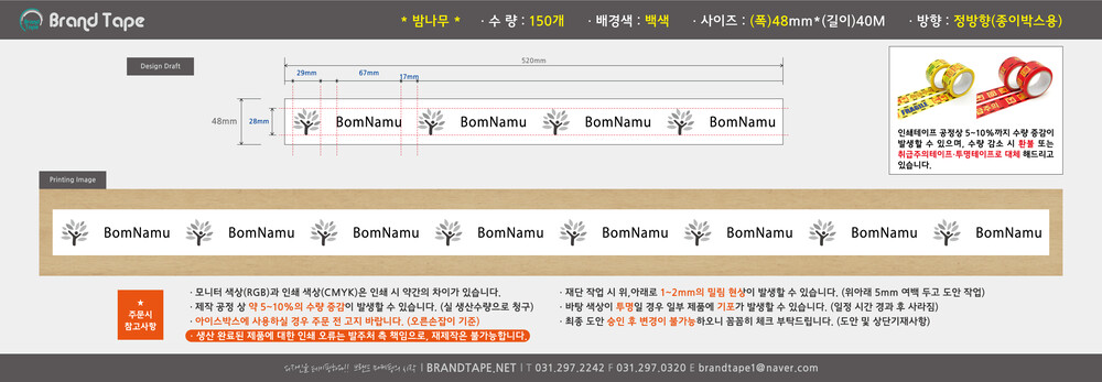 [ 밤나무 고객님 ] 무동판 흑백 인쇄 테이프 150개