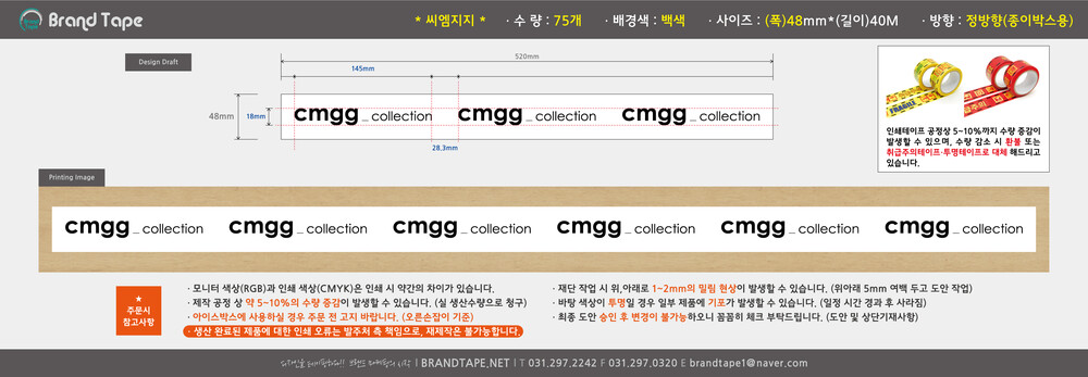 [ 씨엠지지 고객님 ] 무동판 흑백 인쇄 테이프 75개