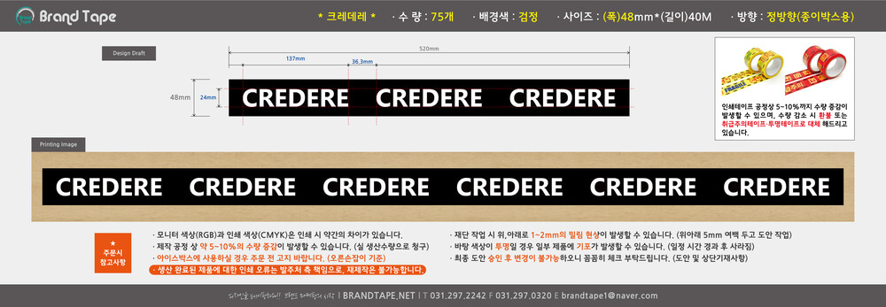 [ 크레데레 고객님 ] 무동판 흑백 인쇄 테이프 75개