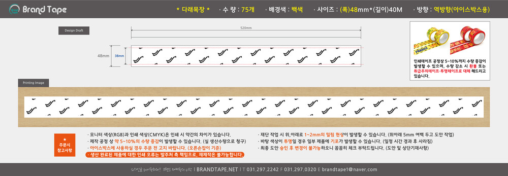 [ 다래목장 고객님 ] 무동판 흑백 인쇄 테이프 75개