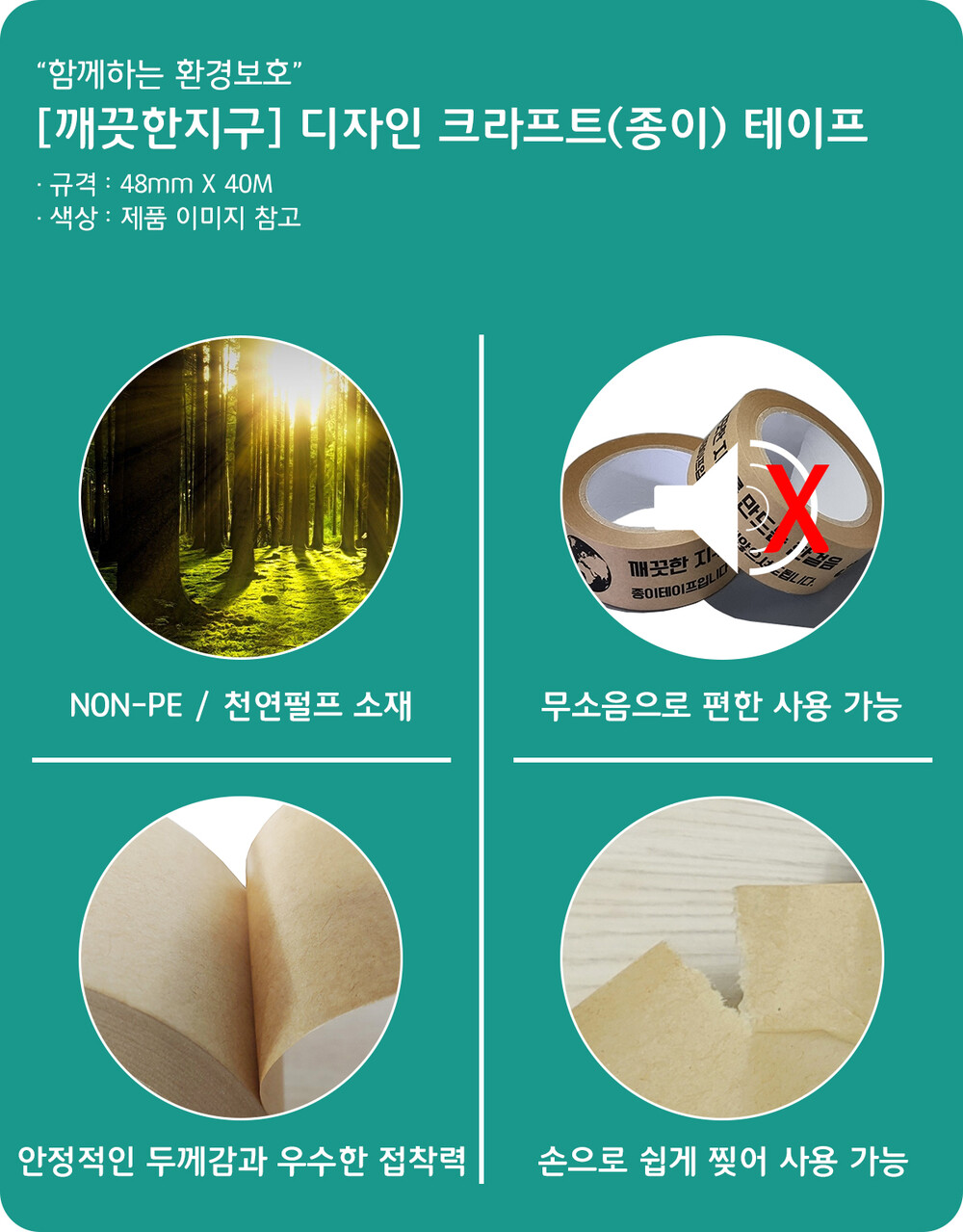 [깨끗한지구] NON-PE 디자인 크라프트 테이프(48mm*40M) 18개~