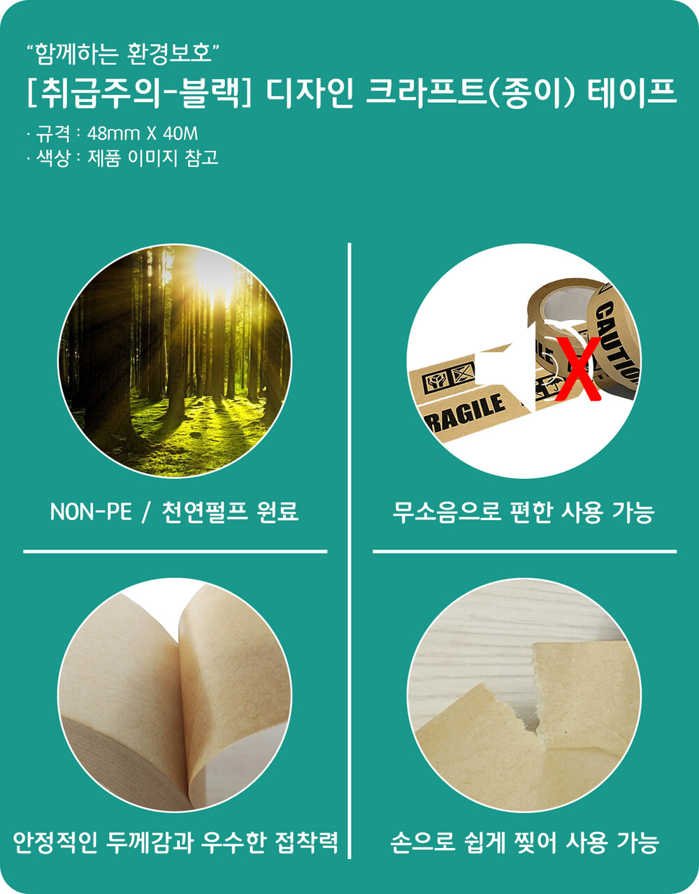 [취급주의-블랙] NON-PE 디자인 크라프트 테이프(48mm*40M) 18개~