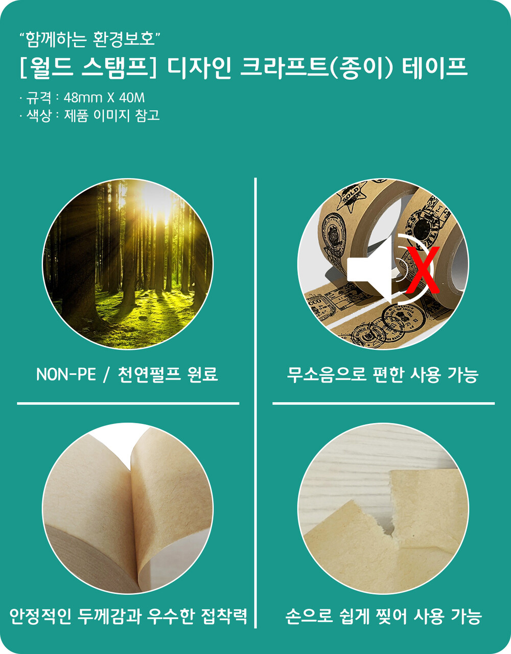 [월드스탬프] NON-PE 디자인 크라프트 테이프(48mm*40M) 18개~