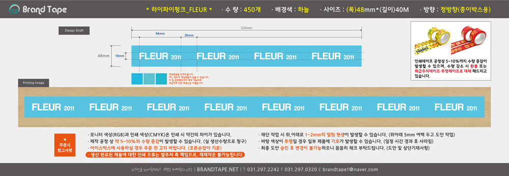 [ 하이파이펑크_FLEUR 고객님 ] 무동판 컬러 인쇄 테이프 450개
