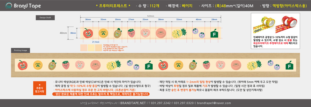 [ 프루터리포레스트 고객님 ] 무동판 컬러 인쇄 테이프 112개