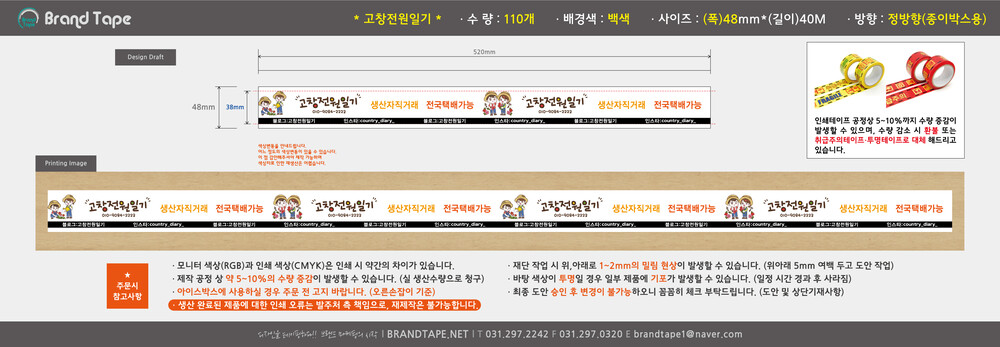 [ 고창전원일기 고객님 ] 무동판 컬러 인쇄 테이프 110개