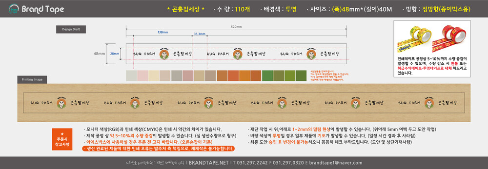 [ 곤충팜세상 고객님 ] 무동판 컬러 인쇄 테이프 110개