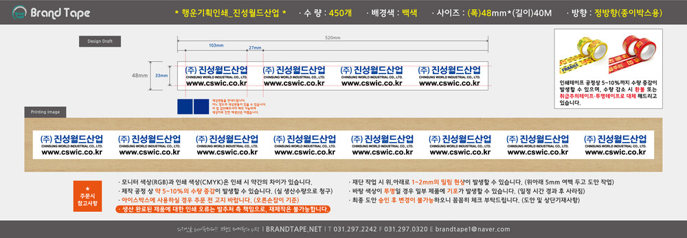 [ 행운기획인쇄_진성월드산업 고객님 ] 무동판 컬러 인쇄 테이프 450개