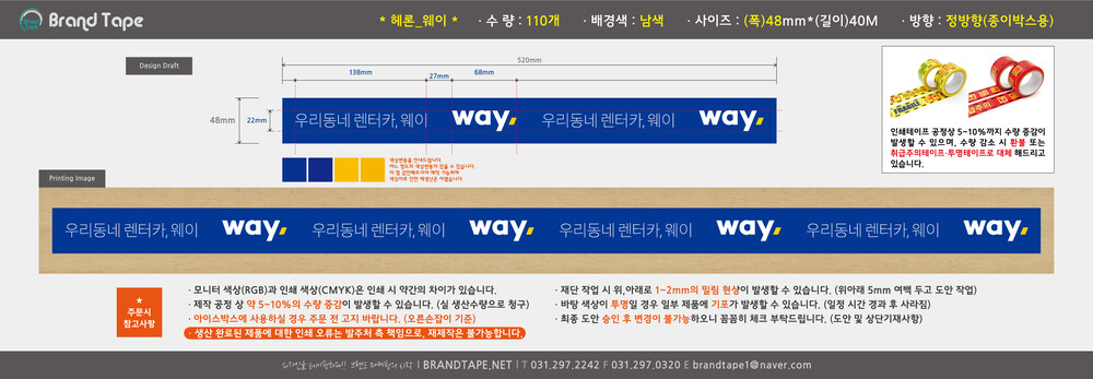 [ 헤론_웨이 고객님 ] 무동판 컬러 인쇄 테이프 110개