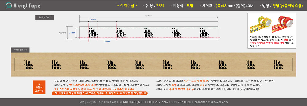 [ 이지수 고객님 ] 무동판 흑백 인쇄 테이프 75개