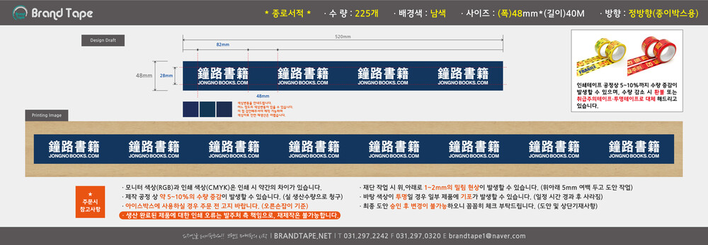 [ 종로서적 고객님 ] 무동판 컬러 인쇄 테이프 225개