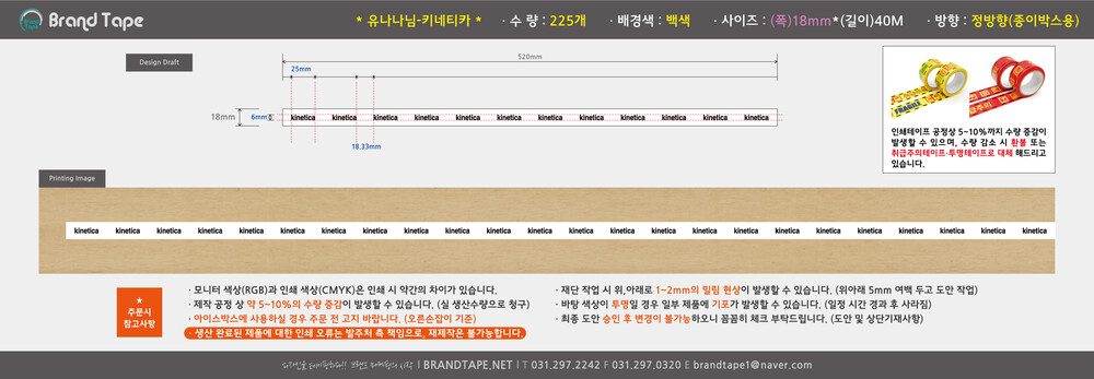 [ kinetica-유나나 고객님 ] 무동판 흑백 인쇄 테이프 225개(18mm)