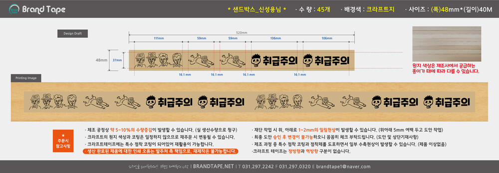 [ 샌드박스 고객님 ] 무동판 크라프트 인쇄 테이프 45개