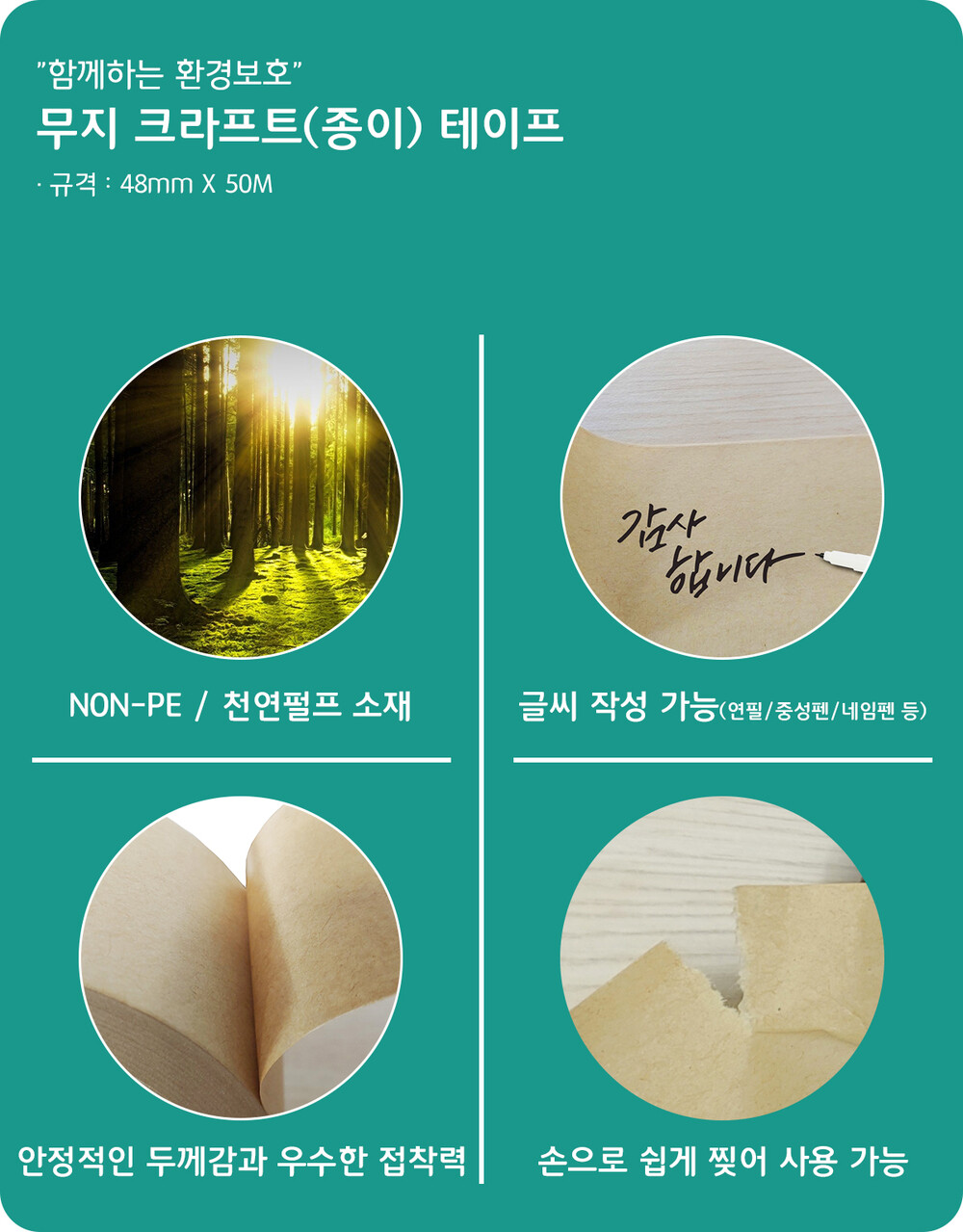 NON-PE 무지 크라프트 테이프-1개(48mm*50M)