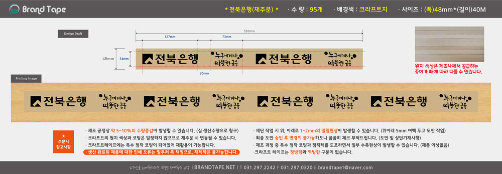 [ 전북은행 고객님 ] 무동판 크라프트 인쇄 테이프 95개