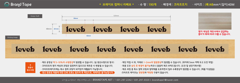 [ 브레이브컴퍼니 고객님 ] 무동판 크라프트 인쇄 테이프 190개