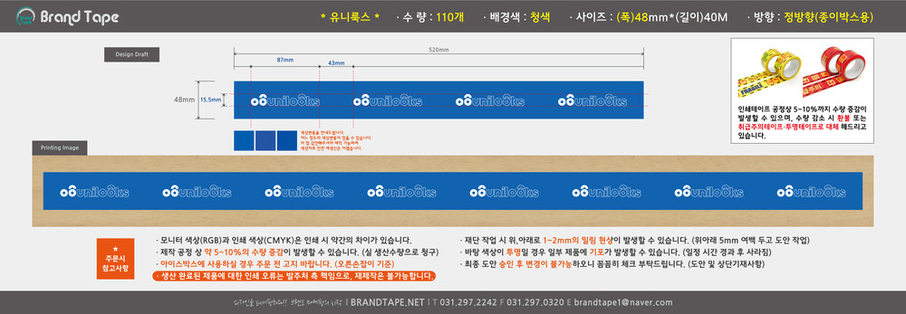 [ 유니룩스 고객님 ] 무동판 컬러 인쇄 테이프 110개