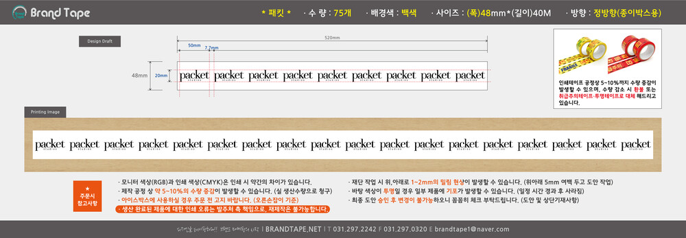 [ 패킷 고객님 ] 무동판 흑백 인쇄 테이프 75개