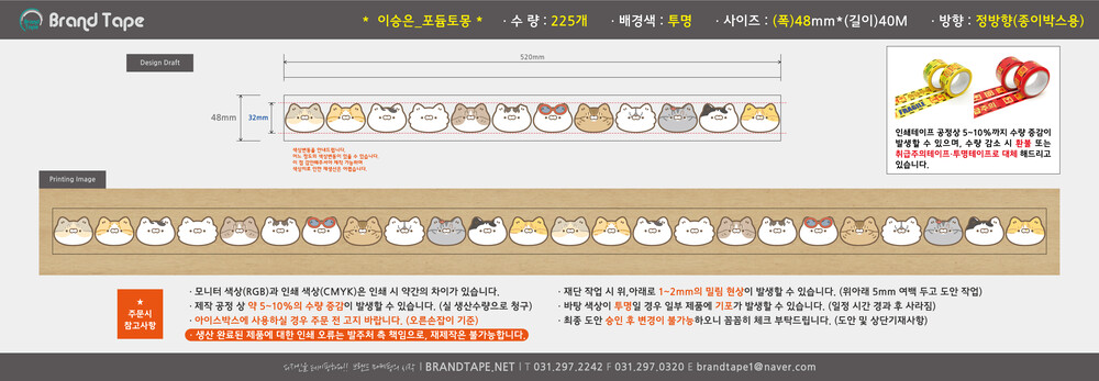 [ 포듐토몽 고객님 ] 무동판 컬러 인쇄 테이프 225개