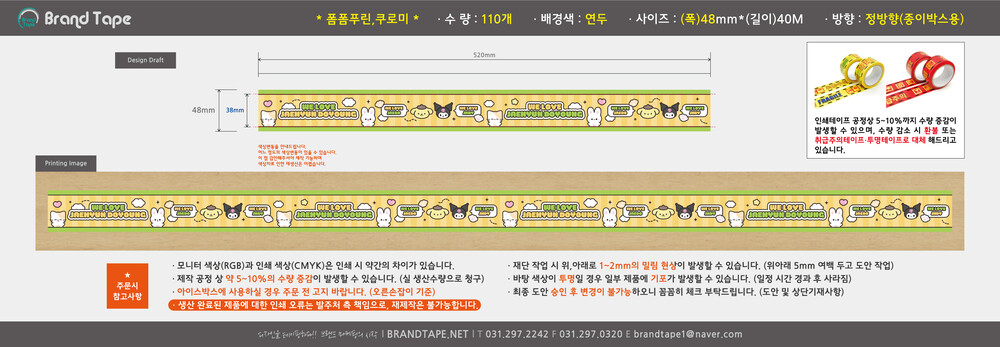[ 폼폼푸린,쿠로미 고객님 ] 무동판 컬러 인쇄 테이프 110개