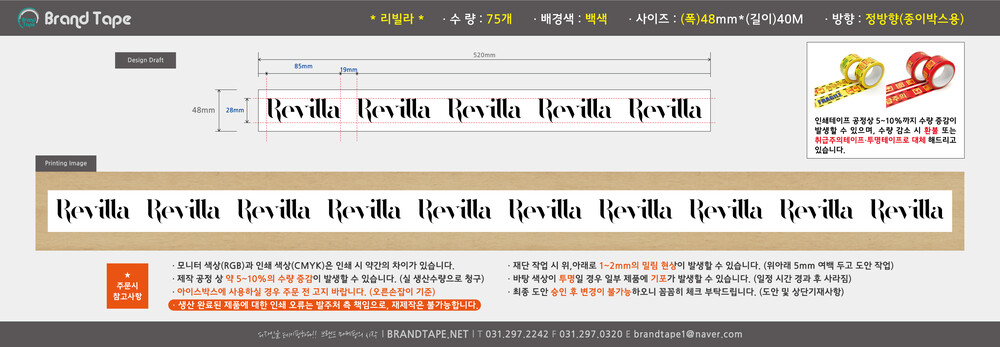 [리빌라 고객님 ] 무동판 흑백 인쇄 테이프 75개