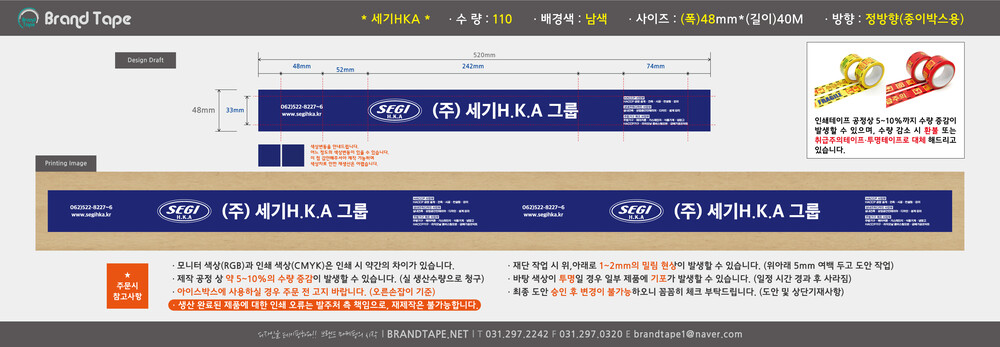 [ 세기HKA 고객님 ] 무동판 컬러 인쇄 테이프 110개