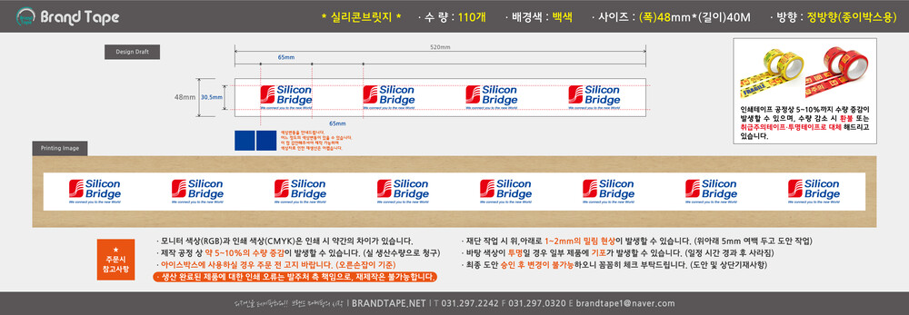 [ 실리콘브릿지 고객님 ] 무동판 컬러 인쇄 테이프 110개