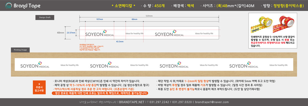 [ 소연메디칼 고객님 ] 무동판 컬러 인쇄 테이프 450개