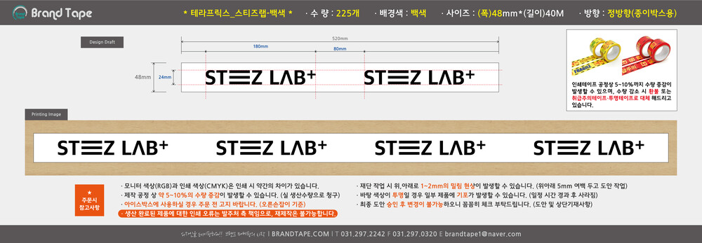 [ 테라프릭스-스티즈랩 고객님 ] 무동판 흑백 인쇄 테이프 225개