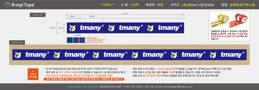 [ 티마니 고객님 ] 무동판 컬러 인쇄 테이프 110개